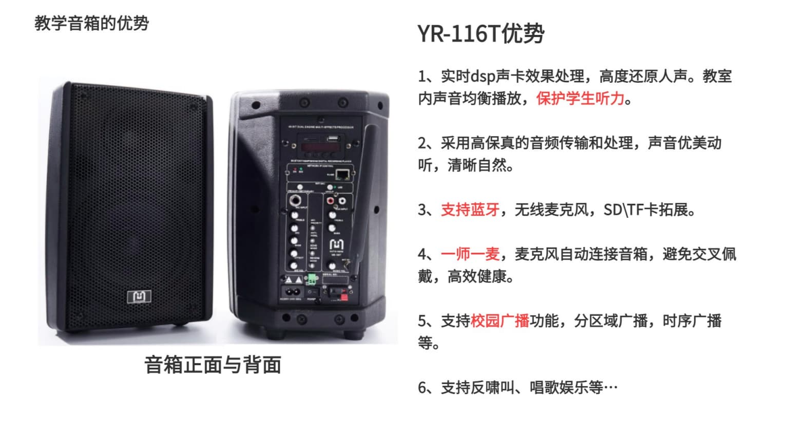 傳統(tǒng)的音箱在用作教學(xué)時,使用起來很不方便。同時普遍存在音效差、擴(kuò)音不均衡、人聲不清晰,在用作教學(xué)時使得教學(xué)質(zhì)量大打折扣。軼倫在研究市場需求的后,對癥下藥,研發(fā)出教學(xué)專用音箱,對教學(xué)需求深度定制,抓住需求痛點(diǎn),如:優(yōu)化音箱音質(zhì),保護(hù)學(xué)生聽力,具備校園廣播功能等。