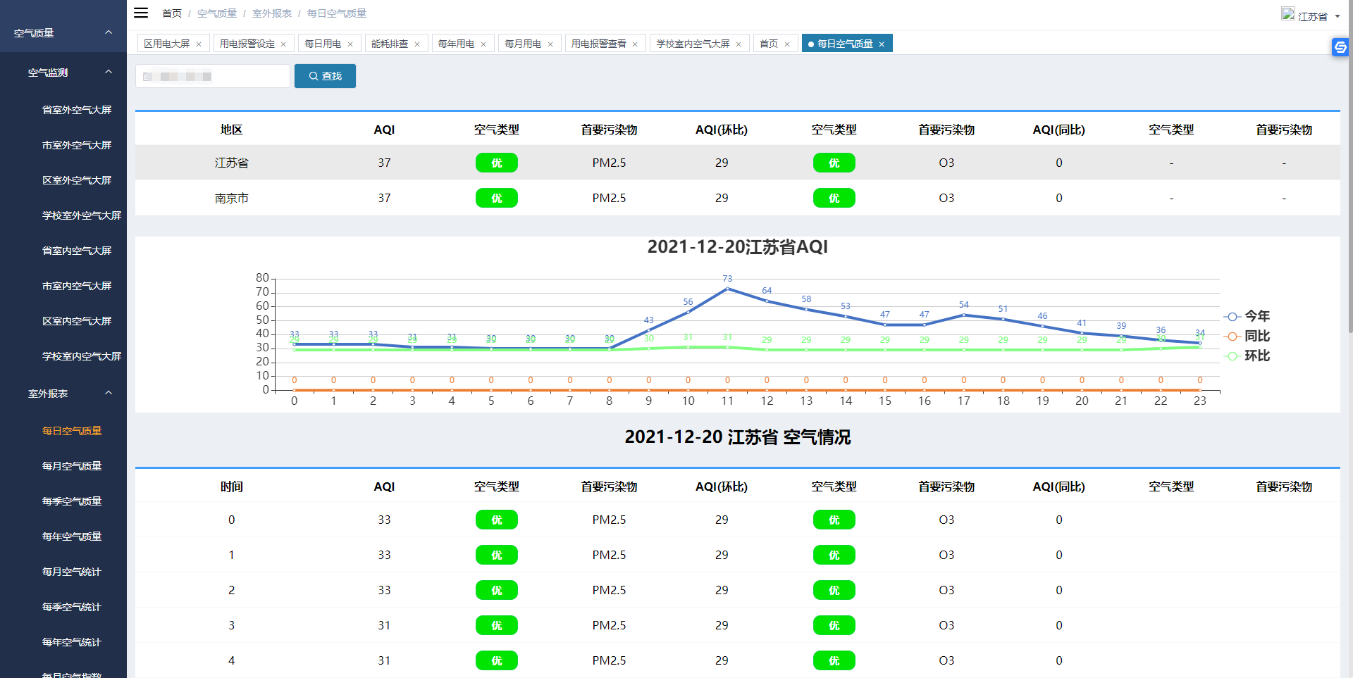 綜合信息空氣大屏界面部分展示