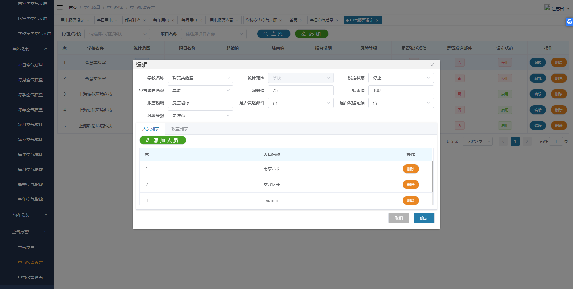 建立統(tǒng)一預(yù)警機(jī)制,對(duì)校園環(huán)境質(zhì)量、污染源等進(jìn)行預(yù)警,實(shí)現(xiàn)對(duì)空氣污染的精細(xì)化防控、治理。